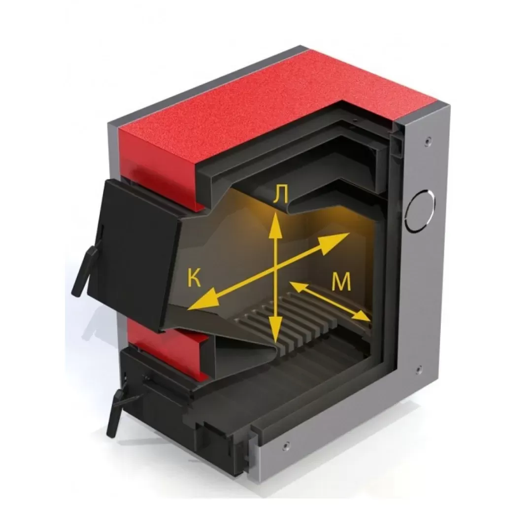Котел изготовлен из жаропрочной котловой стали 3 мм. Стенки топки двойные, образуют водяную рубашку, которая охватывает котел. То есть все его внутренние поверхности (в том числе теплообменник) постоянно охлаждаются водой.