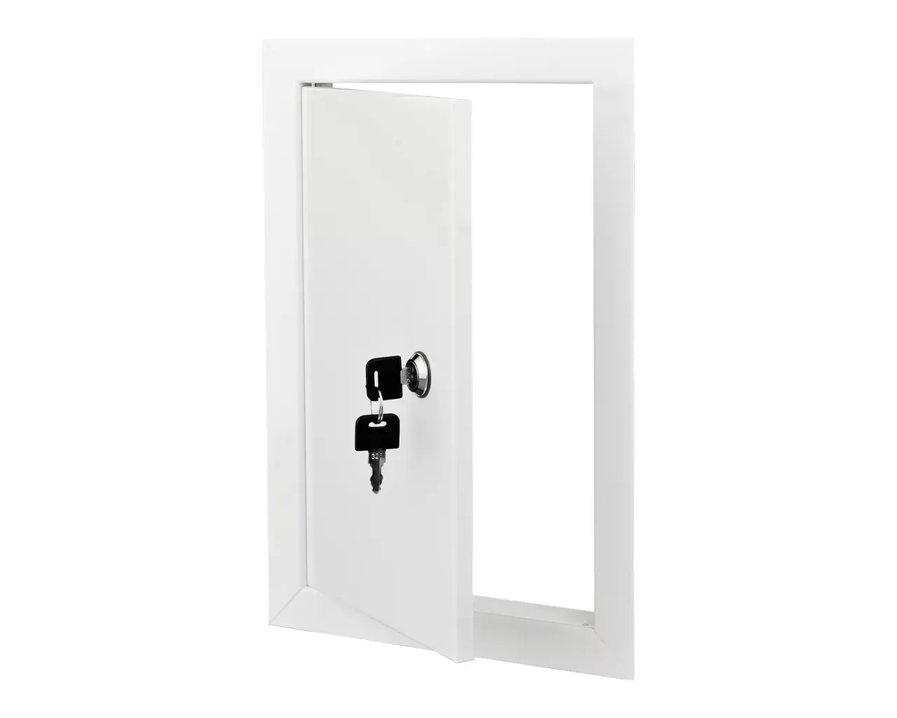 Ревизионная дверца с замком Вентс ДМЗ 300х400 стальная предназначена для установки в стене или потолке. Такой ревизионный люк декорирует технологическое отверстие в стене для доступа к инженерным коммуникациям в жилых или коммерческих помещениях. Эта серия оборудована замком для предотвращения нежелательного доступа к оборудованию.