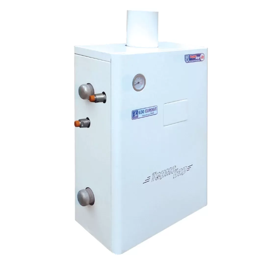 Котел газовый ТермоБар КС-ГВ-16 ДS (КС-ГВ-16 ДS или КС-ГВ-16 ДС) - дымоходный, двухконтурный, напольный отопительный газовый котел, отапливаемая площадь - 160 м2, мощность - 16 кВт, расход газа - 1,8 м3/час, производительность по ГВС, ? 35?С - 4,3 л/мин, итальянская автоматика "EUROSIT", размеры (ВхШхГ) - 840х290х575 мм. Котлел отопительный газовый дымоходный с автоматикой SIT КС-ГВ-16ДS может использоваться для отопления индивидуальных жилых домов, сооружений коммунально-бытового назначения, оборудованных системой водяного отопления с естественной и принудительной циркуляцией теплоносителя. Благодаря новым техническим решениям котлы имеют большой ресурс работы, КПД не менее 90%, бесшумные, экологические показатели на уровне мировых стандартов. Новизна конструкции котлов состоит в том, что теплообменник оригинальной конструкции обеспечивает максимальную теплоотдачу, рабочее давление до 2 кгс/см2 позволяет котлам работать с естественной и принудительной циркуляцией теплоносителя. Многосекционная атмосферная наборная горелка из нержавеющей стали гарантирует не только высокую экологическую чистоту продуктов сгорания, бесшумность в работе, а также отсутствие накопления сажи в камере сгорания при длительной эксплуатации котла. Объясняется это особенностью конструкции основной горелки: она разделена на несколько секций, которые обеспечивают при всех режимах работы быстрое и равномерное распространения газа по всей огненной поверхности горелки, а также равномерное нагревание теплообменных поверхностей. Котлы серии Термобар применяются для отопления жилых домов, сооружений коммунально-бытового назначения, оборудованных системой водяного отопления с естественной и принудительной циркуляцией теплоносителя. Из за новых технических решений котлы имеют большой ресурс работы, КПД не менее 90%, бесшумные, экологические показатели на уровне мировых стандартов.