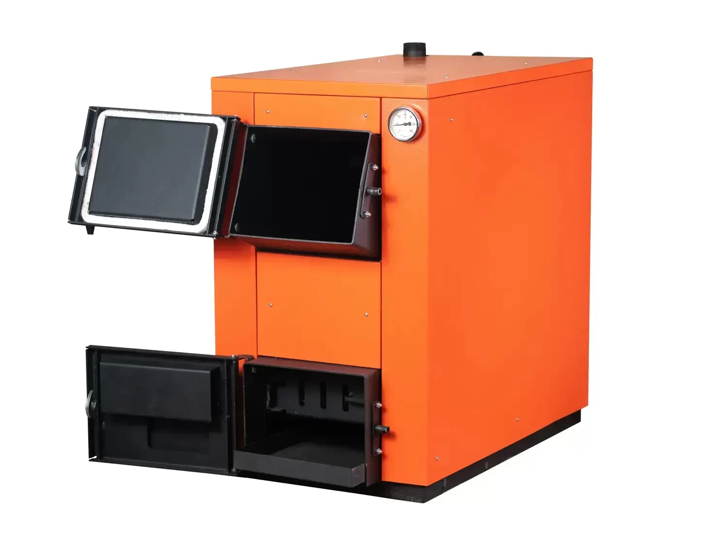 Двери загрузки топлива имеют угол наклона, что позволяет легко загружать мелкие виды топлива.