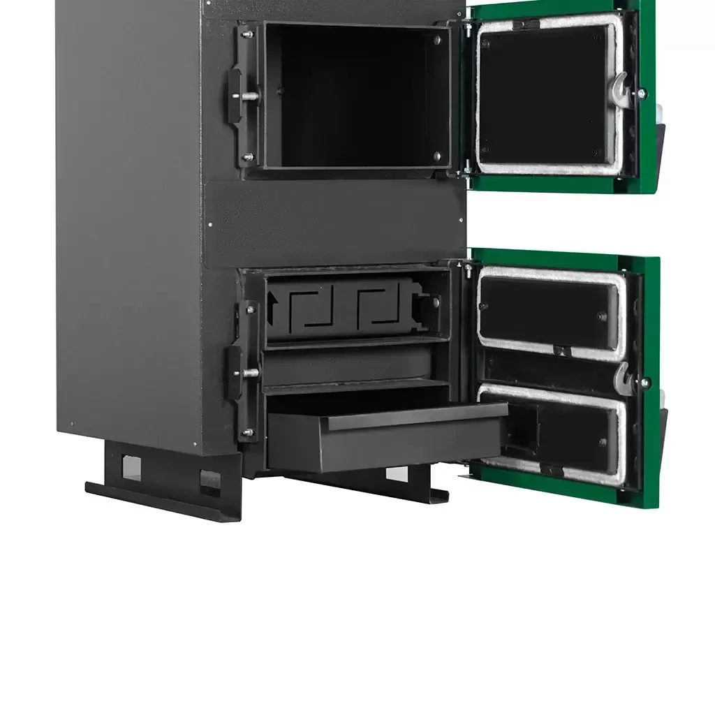 Котел имеет доступ к колосникам через нижнюю дверцу, съёмный поддон для золы.