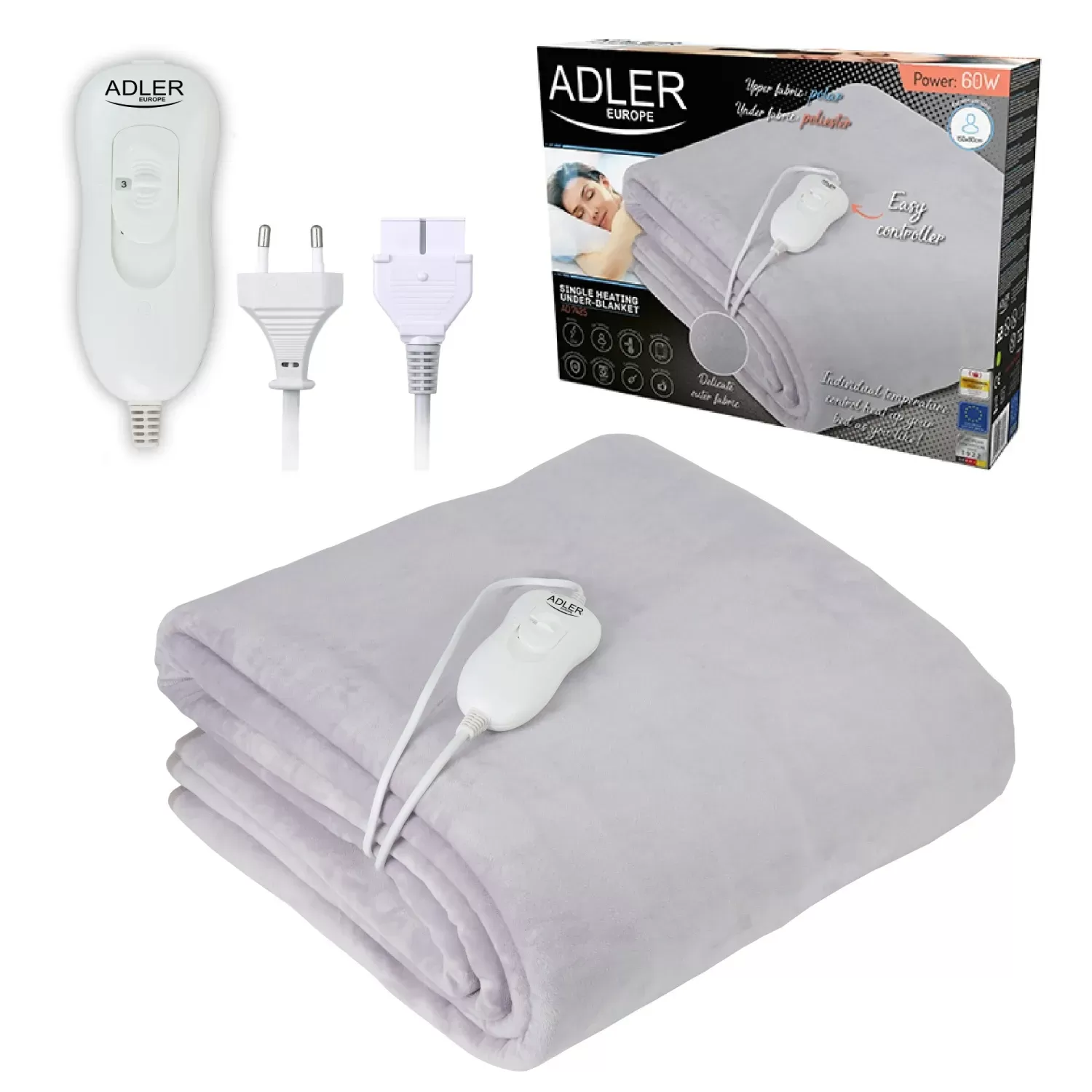 Электроодеяло Adler дарит вам расслабляющее тепло и комфорт. Рекомендуется для людей, которые заботятся о своем здоровье. Электроодеяло снимает невралгию, помогает расслабить мышцы и улучшает кровообращение. Рекомендуется при лечении симптомов артрита и ревматизма. Обеспечивает быстрое и равномерное распределение тепла. Это позволяет вам с удовольствием отдохнуть в теплой постели всего через несколько минут после включения электроодеяла. Одеяло изготовлено из мягкой и нежной ткани. Вы можете легко постирать его, отсоединив регулятор температуры и шнур питания. Регулятор температуры позволяет вам выбирать уровень температуры и обеспечивает защиту от перегрева.