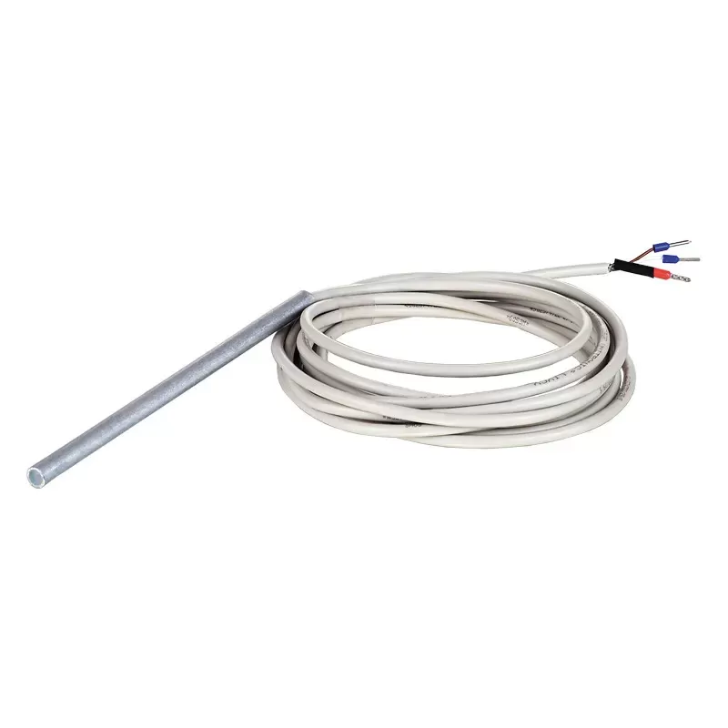 Канальный датчик температуры приточного воздуха выполнен на базе интегральной платы, которая установлена внутрь алюминиевой колбы. Это тип имеет линейную передаточную характеристику выходного напряжения от температуры и 3-х проводное подключение.