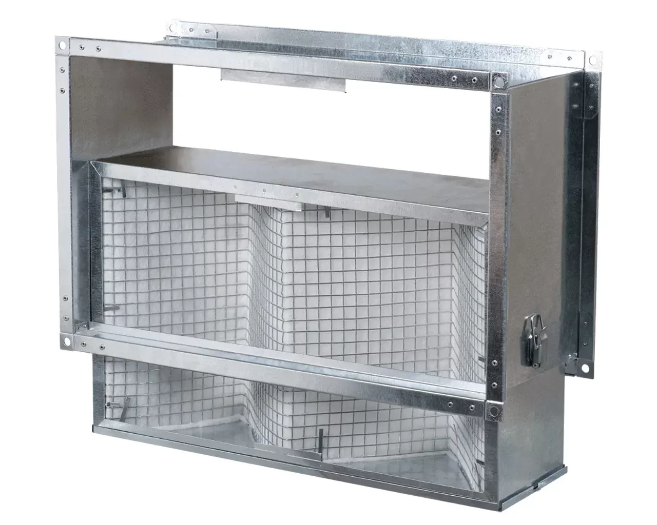 Кассетный фильтр для вентиляции Вентс ФБ 500х300 предназначен для осуществления фильтрации приточного воздуха в системах вентиляции и кондиционирования. Корпус фильтра изготовлен из оцинкованной стали. Фильтрующий элемент имеет несколько волн для увеличения площади фильтрации. Элемент произведен из нетканого полотна из синтетических волокон и защищен металлической сеткой от деформации воздушным потоком. Откидная крышка фильтра оборудована рычажными замками для быстрого доступа к сменному фильтрующему элементу. Глубина корпуса фильтра всего 200 мм, что позволяет их использовать даже в весьма ограниченном пространстве. Класс фильтрации G4.