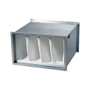 Корпус изготовлен из оцинкованной стали. Откидная крышка фильтра оборудована рычажными замками для быстрого доступа к сменному фильтрующему элементу. Фильтрующий элемент карманного типа изготовлен из нетканого полотна из синтетических волокон и изготавливаются из материалов с классом очистки G4, F5, F7 (класс фильтрации данного товара G4).