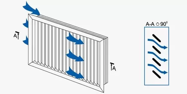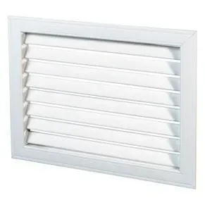 Решетка вентиляционная с нерегулируемыми горизонтальными наклонными жалюзи.