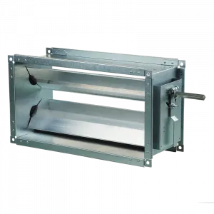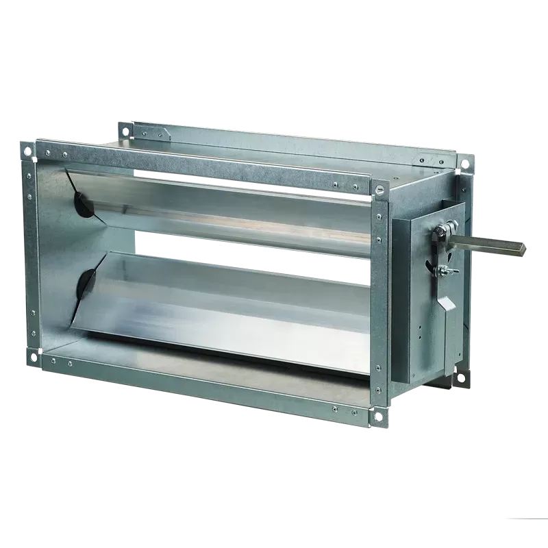 Регулятор может регулироваться вручную с помощью металлической рукоятки и фиксатора положения заслонки или с помощью электропривода. Для монтажа привода предусмотрена площадка и шток.