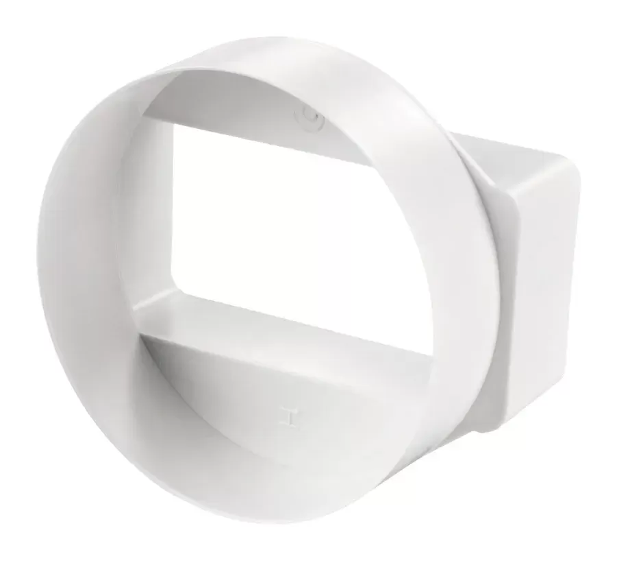 Переход с плоской вытяжки на круглую Вентс 1156 предназначен для соединения пластикового плоского воздуховода 55х110 напрямую и круглого канала диаметром 100 мм через соединитель. Элемент является одним из компонентов системы пластиковых каналов для вентиляции Пластивент.