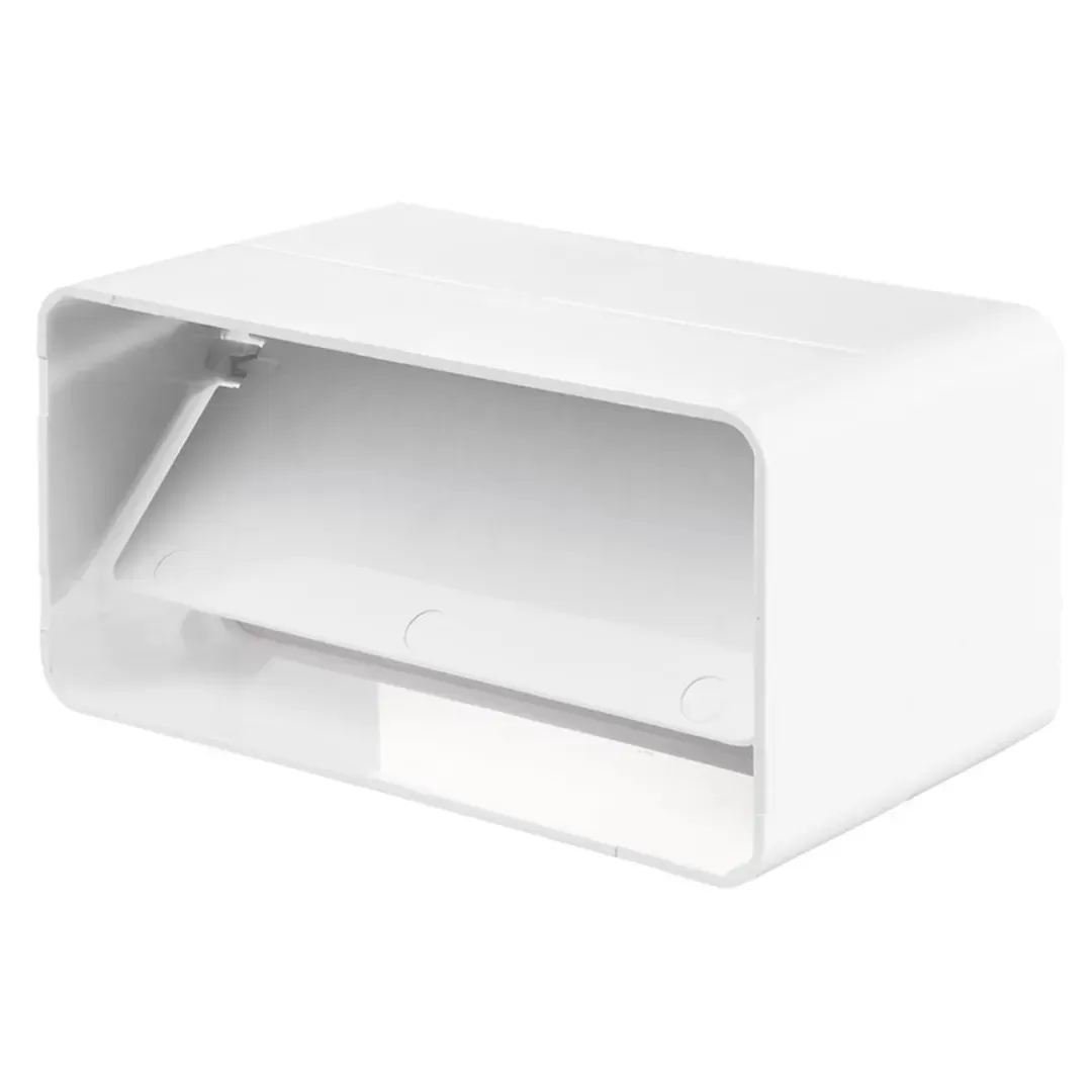 Соединитель плоских каналов Вентс 5151 с обратным клапаном соединяет пластиковый воздуховод для вытяжки сечением 55х110 мм с таким же каналом. Гравитационный клапан закрывается при выключенном вентиляторе под действием силы тяжести.