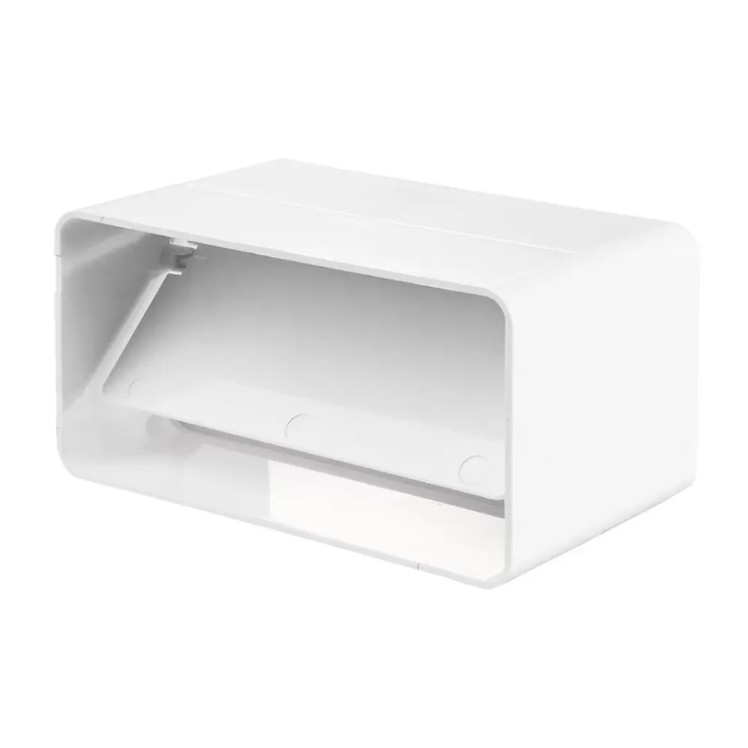 Соединитель плоских каналов Вентс 8181 с обратным клапаном соединяет пластиковый воздуховод для вытяжки сечением 60х204 мм с таким же каналом. Гравитационный клапан закрывается при выключенном вентиляторе под действием силы тяжести.