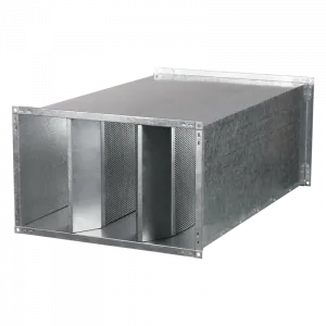 Шумоглушитель для вентиляции прямоугольный Вентс СР 500х300 применяется для поглощения шума, возникающего при работе вентиляционного оборудования и распространяющегося по воздуховодам вентиляционных систем сечением 500х300 мм. Длина шумоглушителя 950 мм. Шумоглушитель прямоугольный значительно снижает уровень аэродинамического шума в воздуховоде.