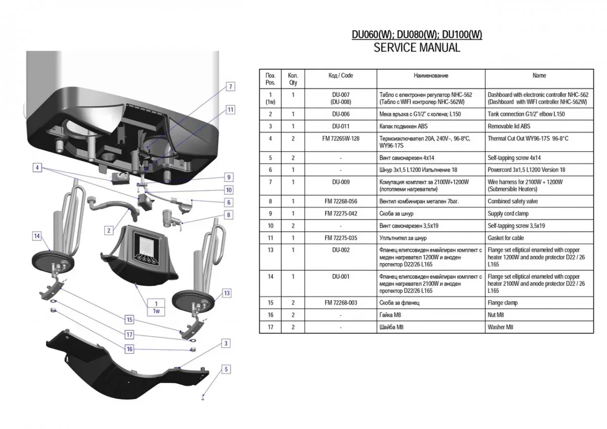 Комплектация - гарантийный талон, электрическая вилка, предохранительный клапан, кабель питания, магниевый анод, монтажная планка, инструкция по эксплуатации